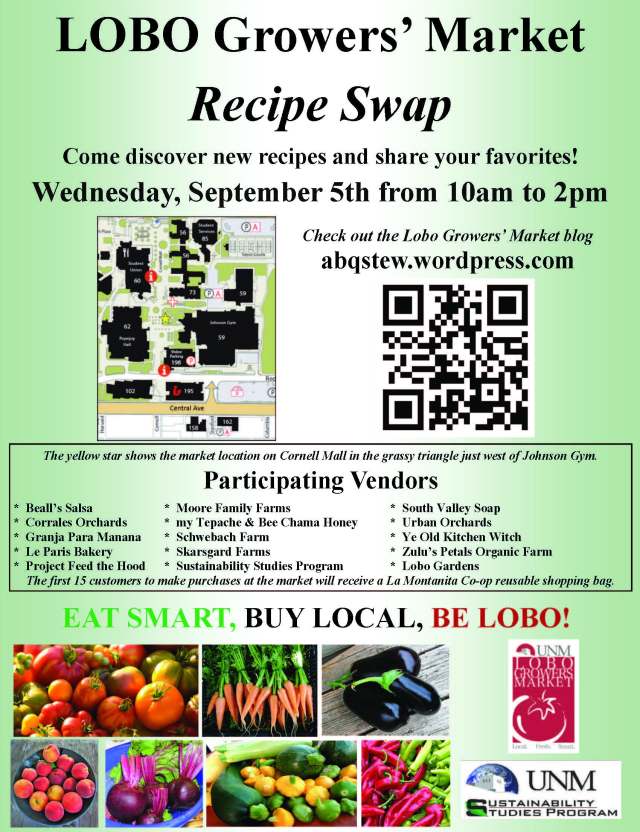 Bring a recipe…take a recipe at the second of six Lobo Growers’ Markets on main campus tomorrow!!