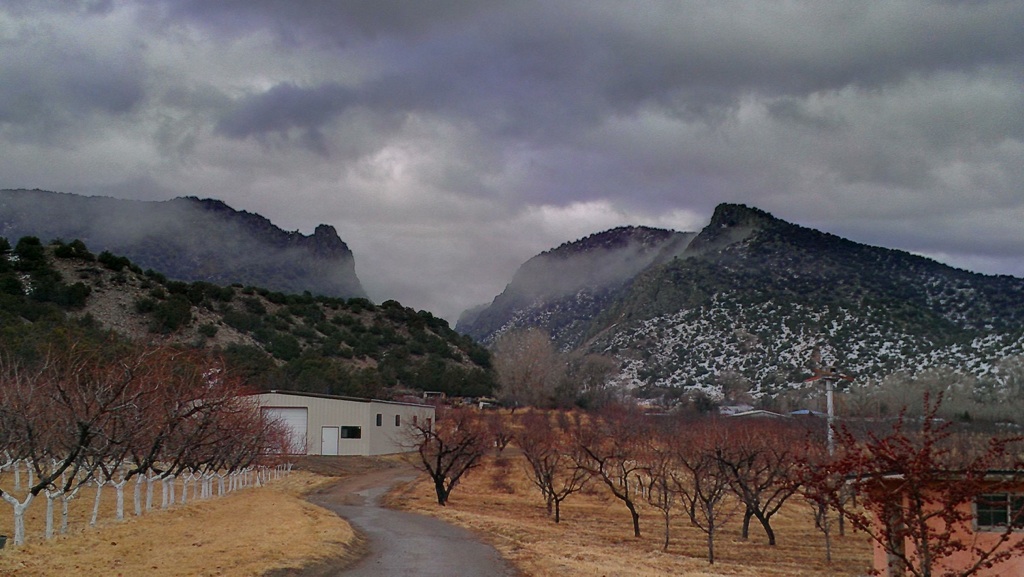 The orchard (and apple shed) in winter. Photo credit: Louisa Martinez