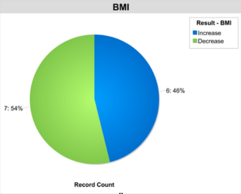 54% of the patients decreased their BMI during the course of the 4-month program.