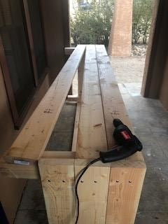 Attaching the 8ft boards to the sides of the 2ft post to make a rectangle.