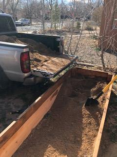 Once the post holes are dug and the planter box is in its spot, start shoveling!