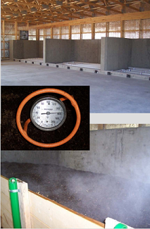 Aeration bays that hold to mixture (manure and organic material) for thermophilic composting