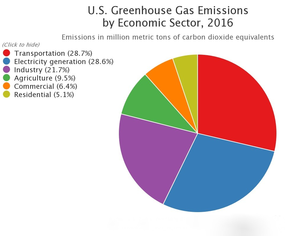 The breakdown of all United States CO2 emissions. https://www3.epa.gov/climatechange/ghgemissions/inventoryexplorer/#allsectors/allgas/econsect/current