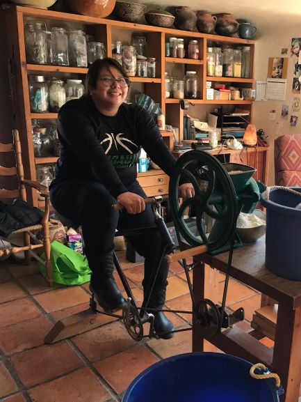 Bicycle-powered grinder for grain. Image courtesy of Roxanne Swentzell
