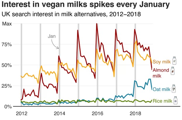Over the past decade, plant-based milk seems to be getting more and more popular. I remember when oat milk raised in popularity a couple of years ago, there was a shortage at Starbucks. It was close to impossible to find oat milk anywhere. There were other plant-based milk options at the time, but oat milk was the one that stuck out.