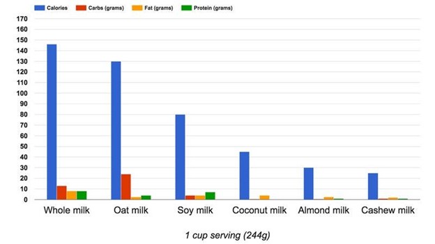 The main health reason people consume plant-based milk instead of cow milk is because of lactose. Other than having no lactose, plant-based milk provides several other health benefits. Cow milk has more fat compared to most milk alternatives. On average, plant-based milk has 25-63% less fat. The majority of the types of plant-based milk have less sugar in it, except for oat milk.