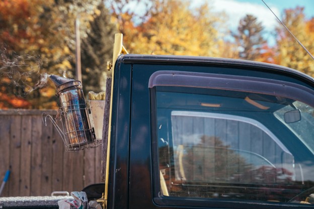 Martin Marklin, age 61, wakes up before dawn, pulls on his boots, and heads outside. He approaches his bee-buggy: a small, two-seater Mitsubishi truck painted in black in yellow. The truck bears a few modifications including a slot to hold the bee-smoker, a light up “stinger”, and two antennae (wire coils with painted foam balls).