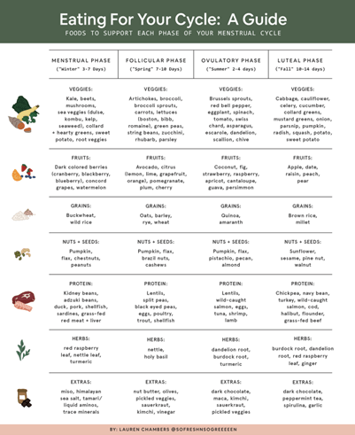 Here are a few charts to help you cycle sync. Click here and here and here for more information and recipes!